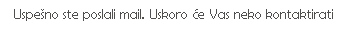 Hvala Vam što ste nas kontaktirali, odgovorićemo Vam u najkraćem moguće roku..